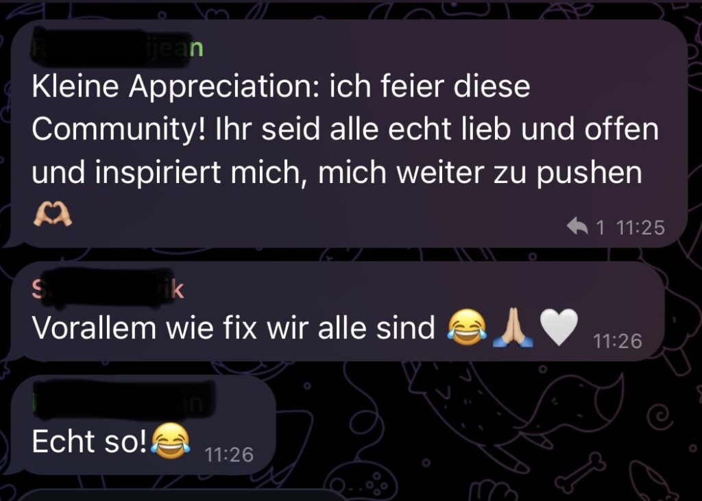 “DANKE, für die intensivsten drei Monate in meinem Business. Ihr habt meine hohe Erwartungshaltung so sehr gesprengt, das hätte ich nicht gedacht!! Nach jeder Session, war ich so motiviert und konnte mir durch euch eine Struktur aufbauen und auch an meiner Disziplin arbeiten. Den Input den ihr uns gegeben habt, hätte ich mir in noch ein paar Jahren nicht ergattern können. Ich bin einfach froh diese Entscheidung getroffen zu haben”