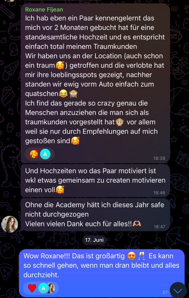 In 3 Monaten bekommen unsere Studis die Tools an die Hand, um genau die Kunden und Hochzeiten anzuziehen, die sie auch begleiten möchten.